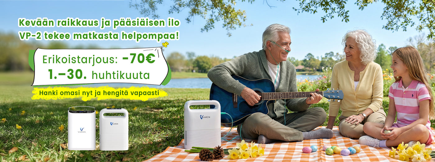 VARONin kannettavat happikonsentraattorit on tehty sinua varten. Ne auttavat sinua jaksamaan ja pysymään aktiivisena siellä missä arki vie – olipa kyseessä sitten koti, työmatka tai reissu.